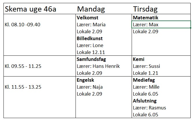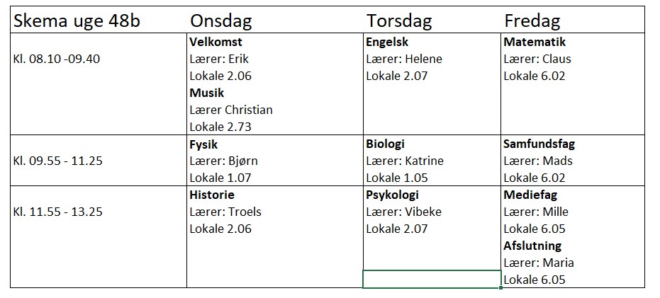 Kl. 8.10 – Se skema for ugerne nederst på siden, når forløbene er planlagt.