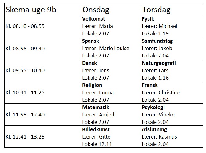 Kl. 8.10 – se skemaer for ugerne nederst på siden, når forløbet er planlagt.